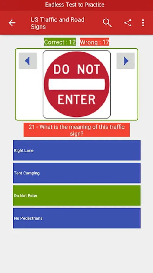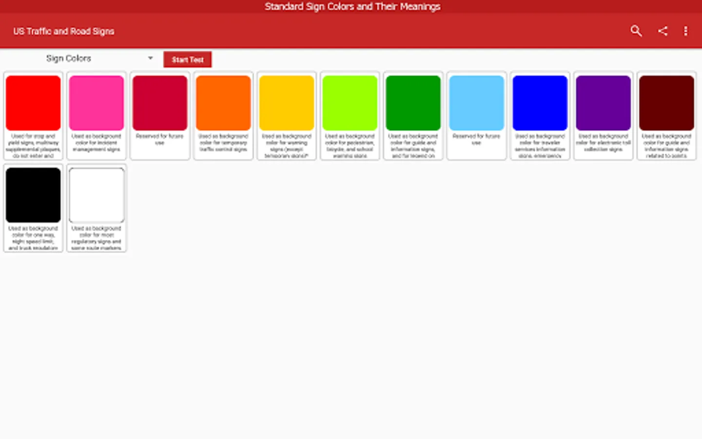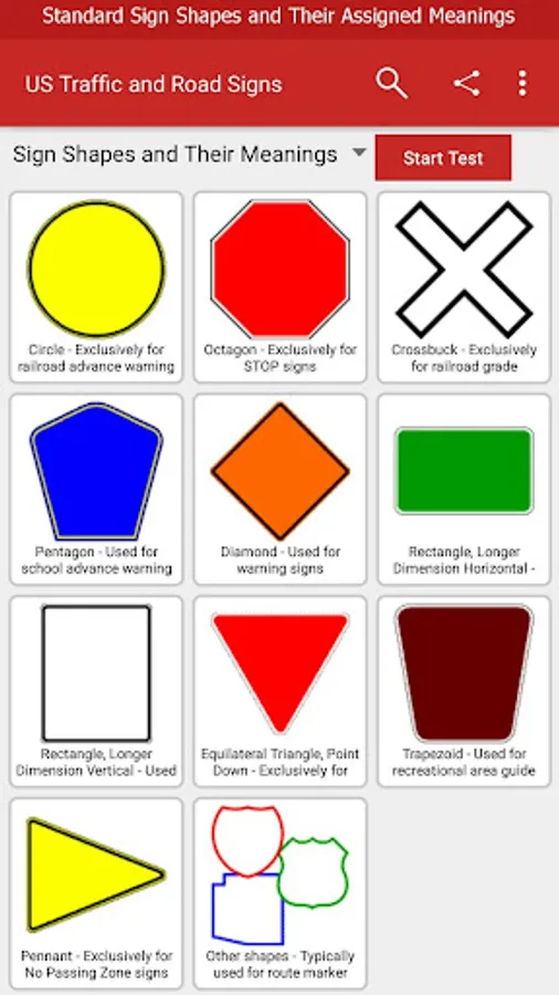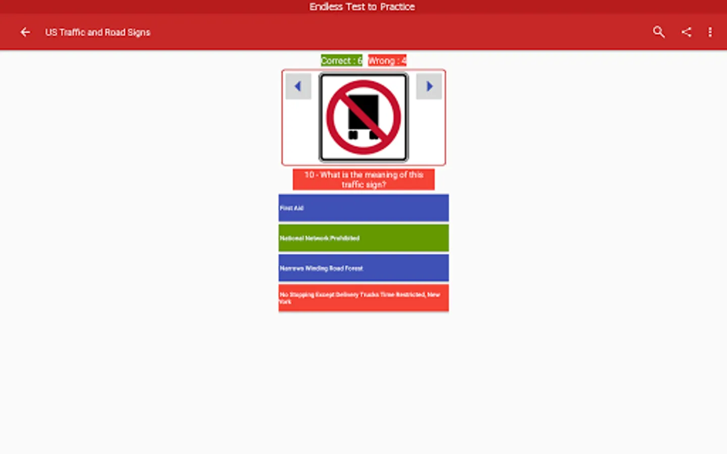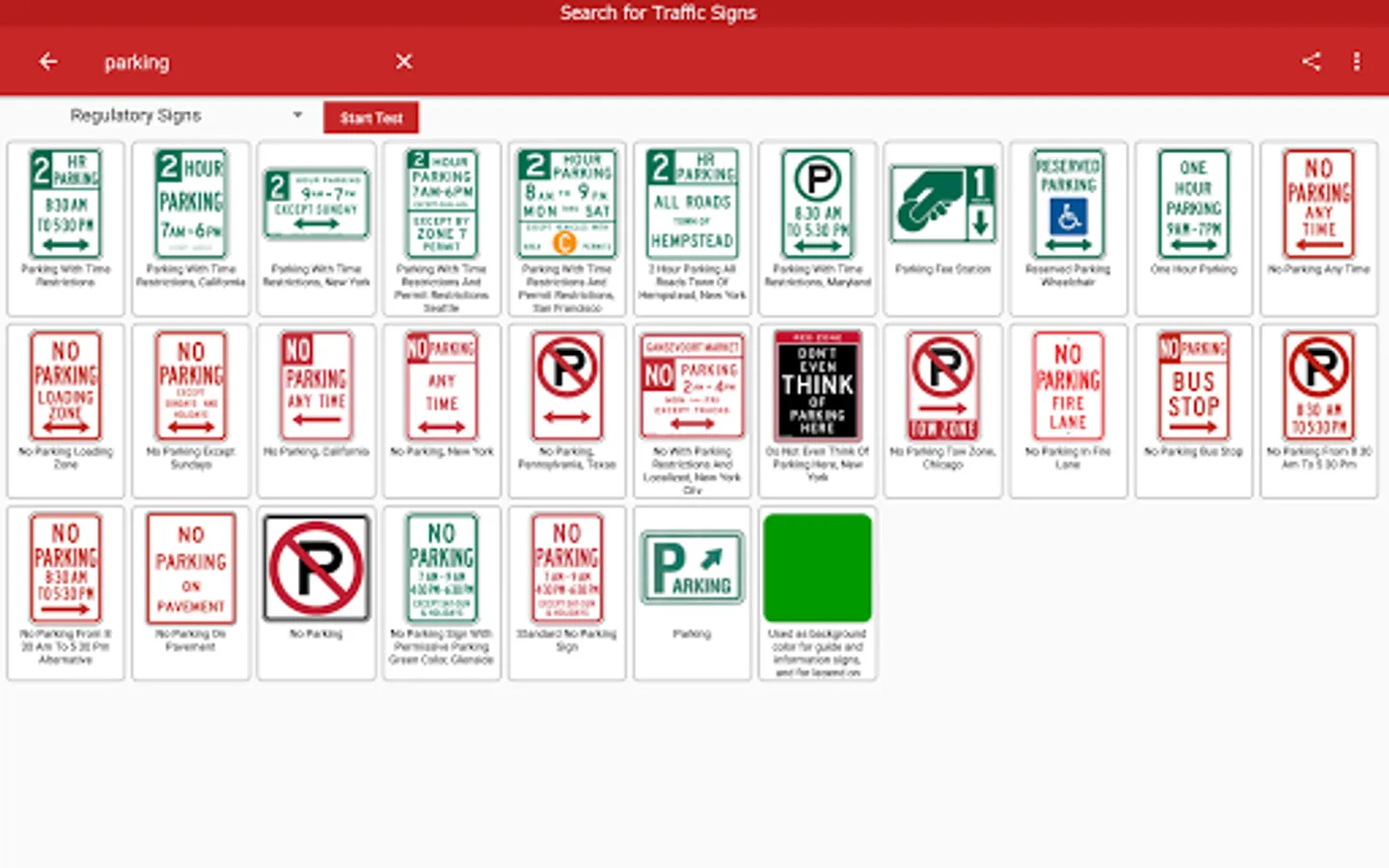 This app includes all the latest traffic/road signs (of the year 2014, 2015, 2016, 2017,2018,2019,2020,2021,2022) which you need to know to be a better driver. If you already have a license, still, you want to go through these signs to ensure that you know every sign. If you planning to give driver's knowledge test or actual drive test in near future then this app will help you a lot because you will find numerous questions on signs in your driving or DMV knowledge test. Endless practice tests will help you to familiarize yourself with the actual test system.