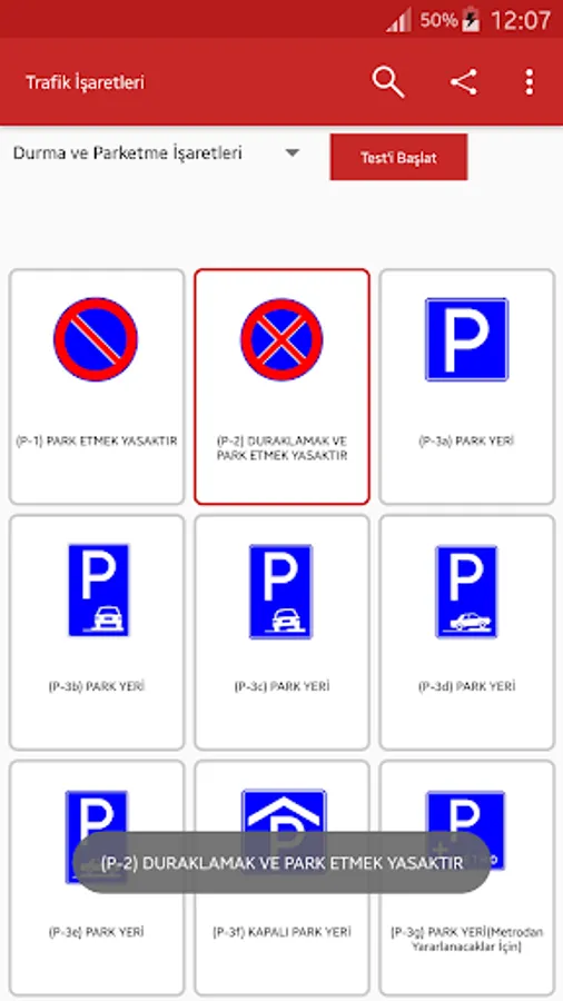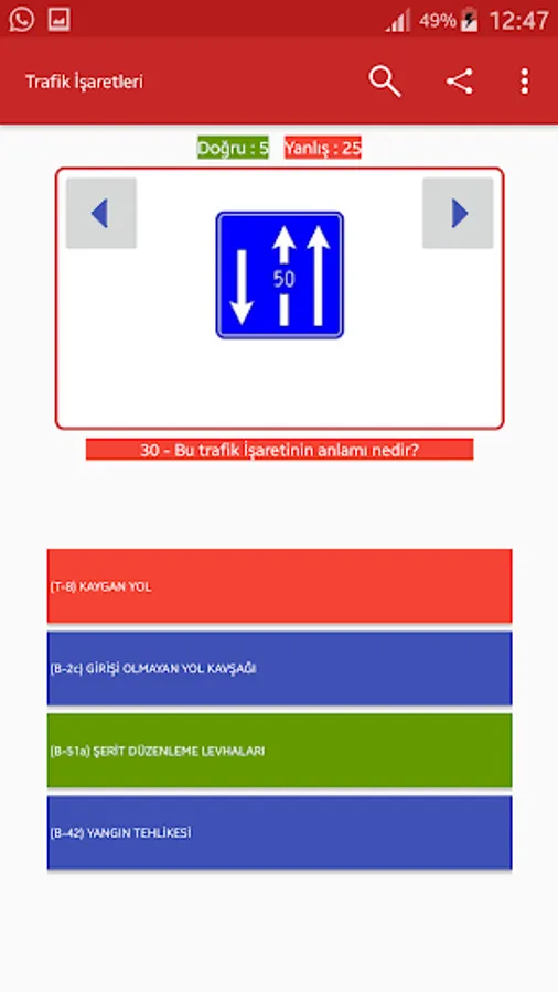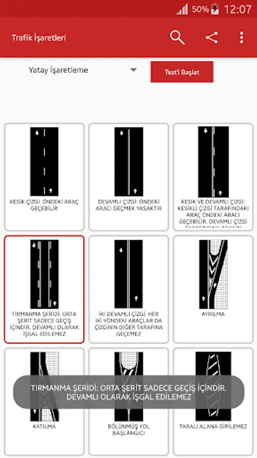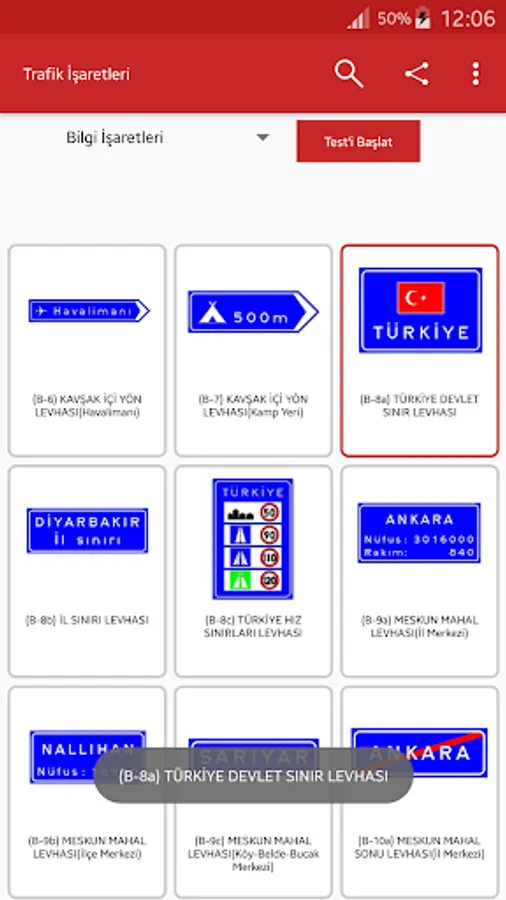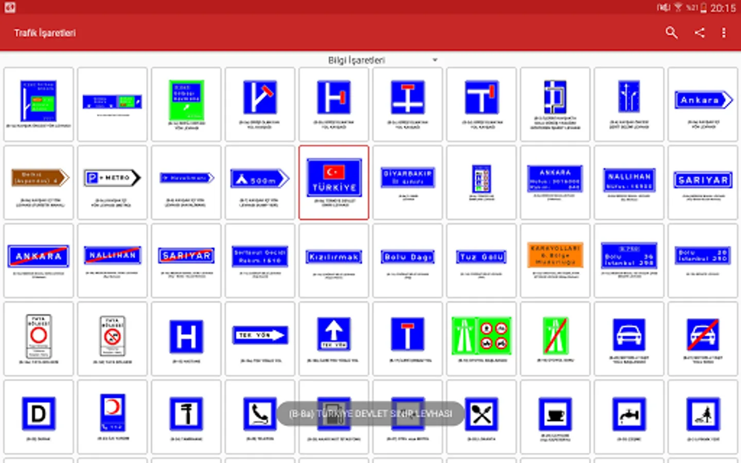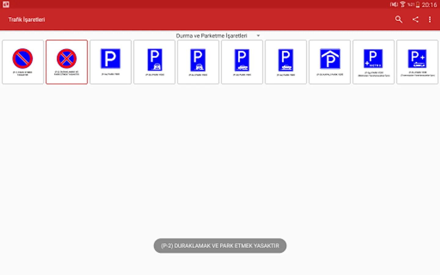 The Traffic Signs are presented to you in 5 groups and you can access the traffic signs in the related area directly from the menu.