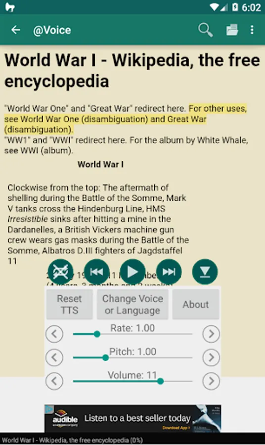 • Read and listen to web pages and various local files, including text, PDF, DOC, DOCX, RTF, OpenOffice documents, and HTML files.
