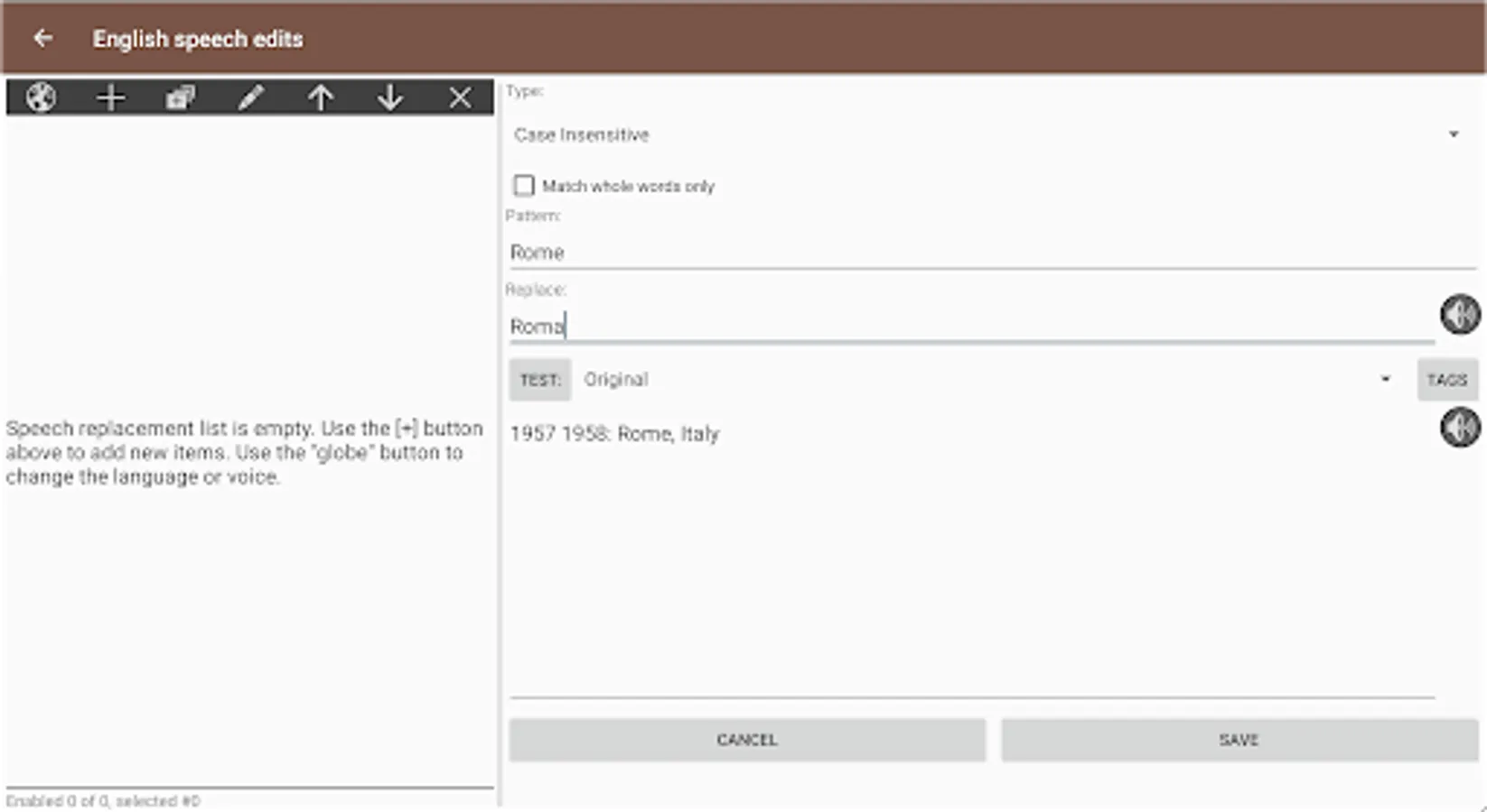• Enhance speech with TTS correction, including optional use of Regular Expressions (RegEx).