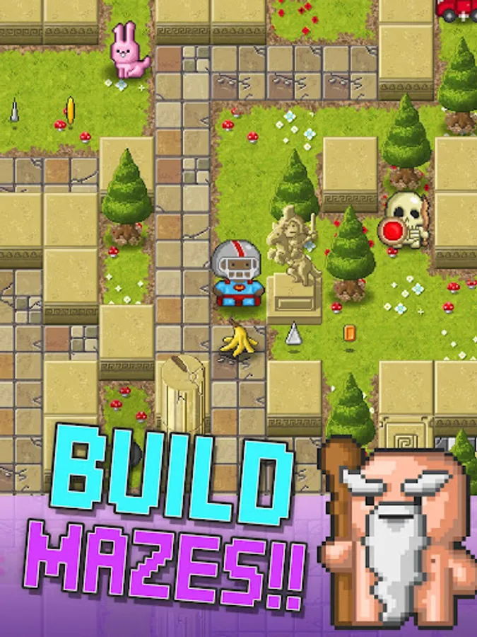 Play countless mazes stocked with fun features and deadly surprises. Design and build your own mazes and invite your friends to try them out, then watch replays of them falling for your tricks.