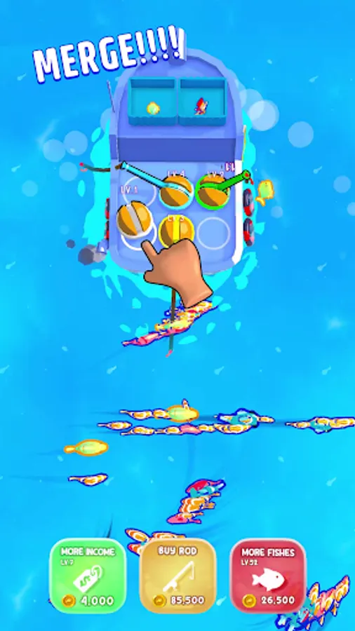 Upgrade your gear by buying new rods and merging them for even greater fishing power. 💵💵💵💵💵