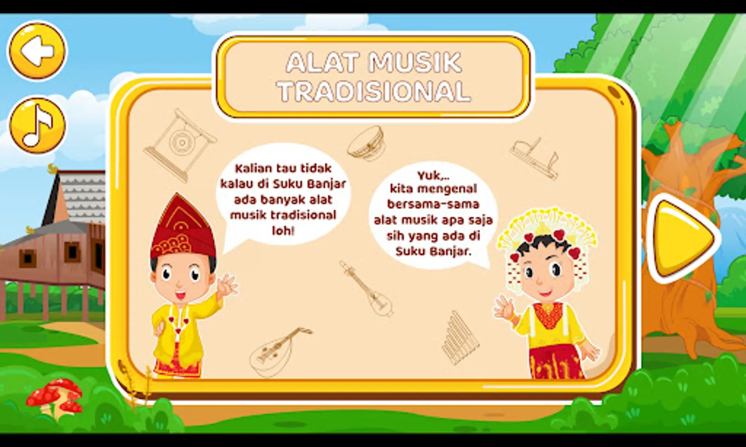 Asik Banjar is a series of children's education applications created to help children learn about musical instruments typical of the Banjar Tribe Tradition with exciting and fun sensations.