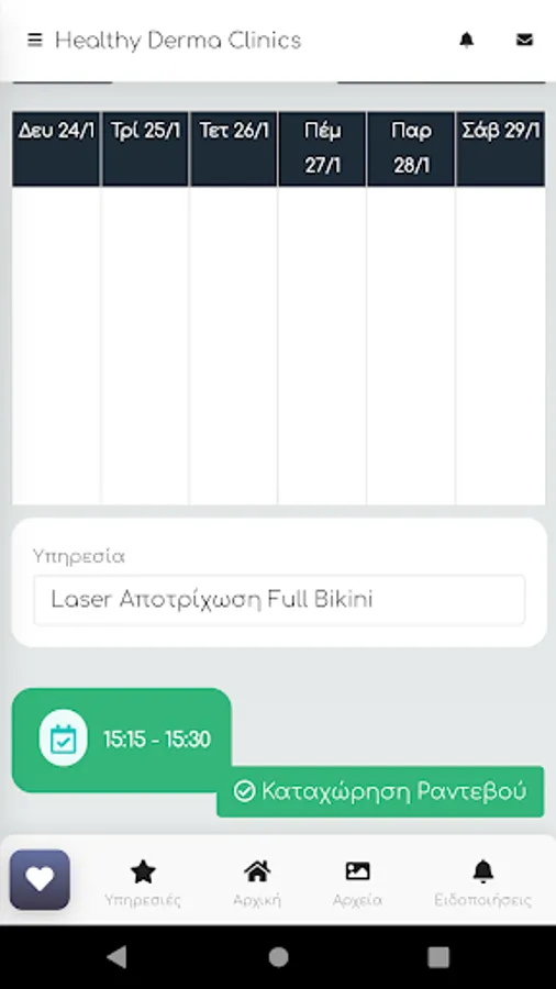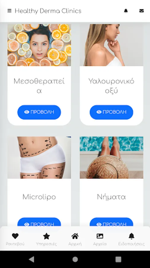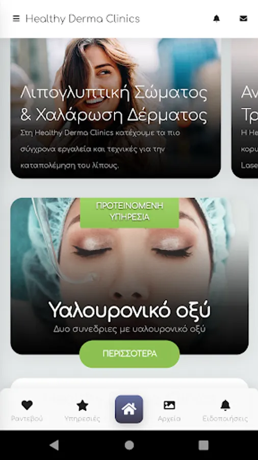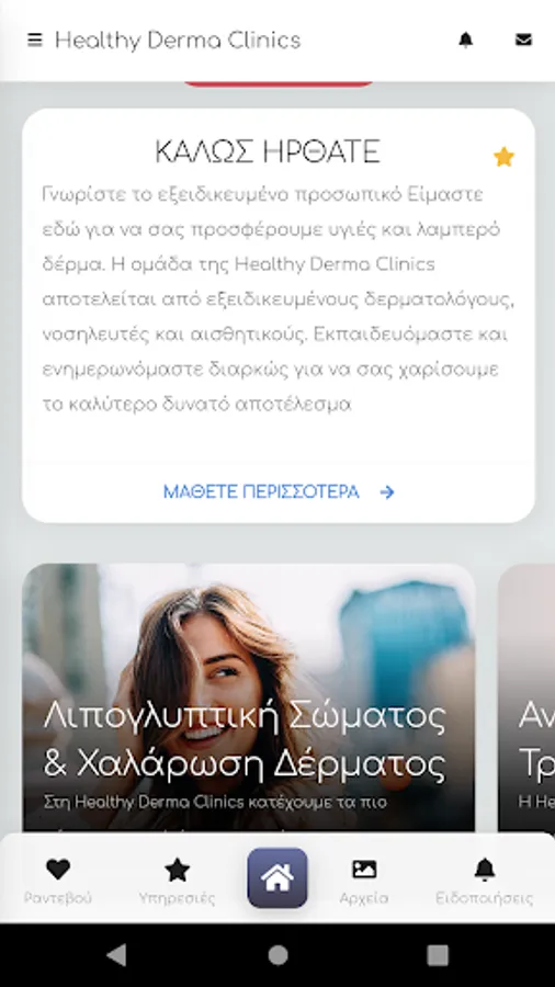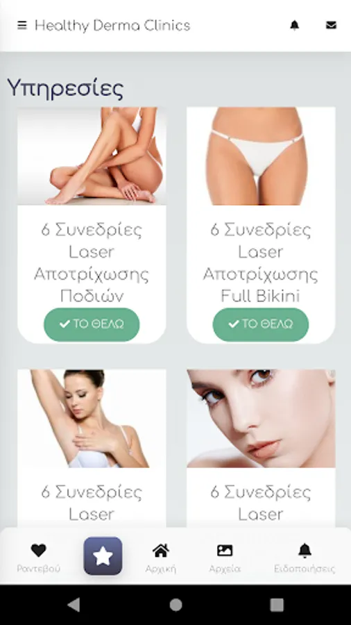 This is the Healthy Derma Clinics app. You can schedule an appointment, be informed or cancel existing appointments, purchase a new dermatological package deal, see your reward points, learn about new treatments and be up to date about dermatology news and the trends in anti-aging treatments.