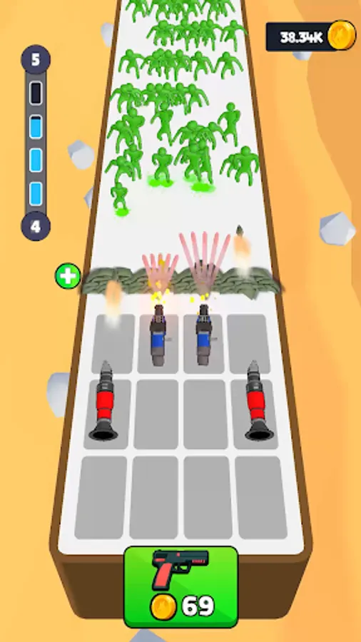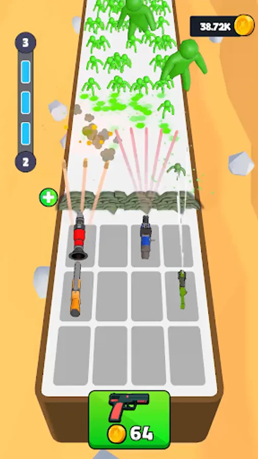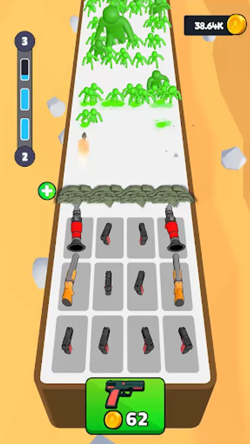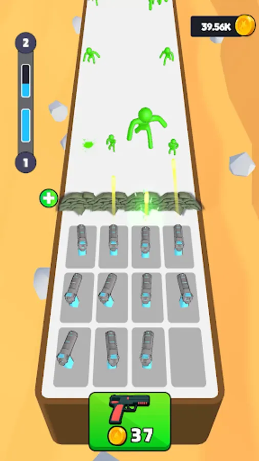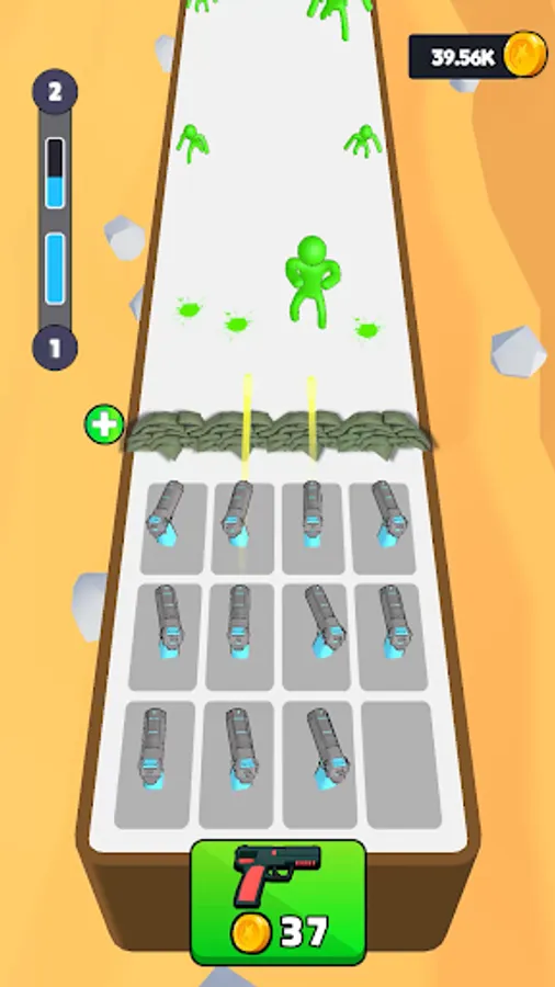 Defend your base using your weapons. Improve your guns by merging existing guns. Destroy all enemies!