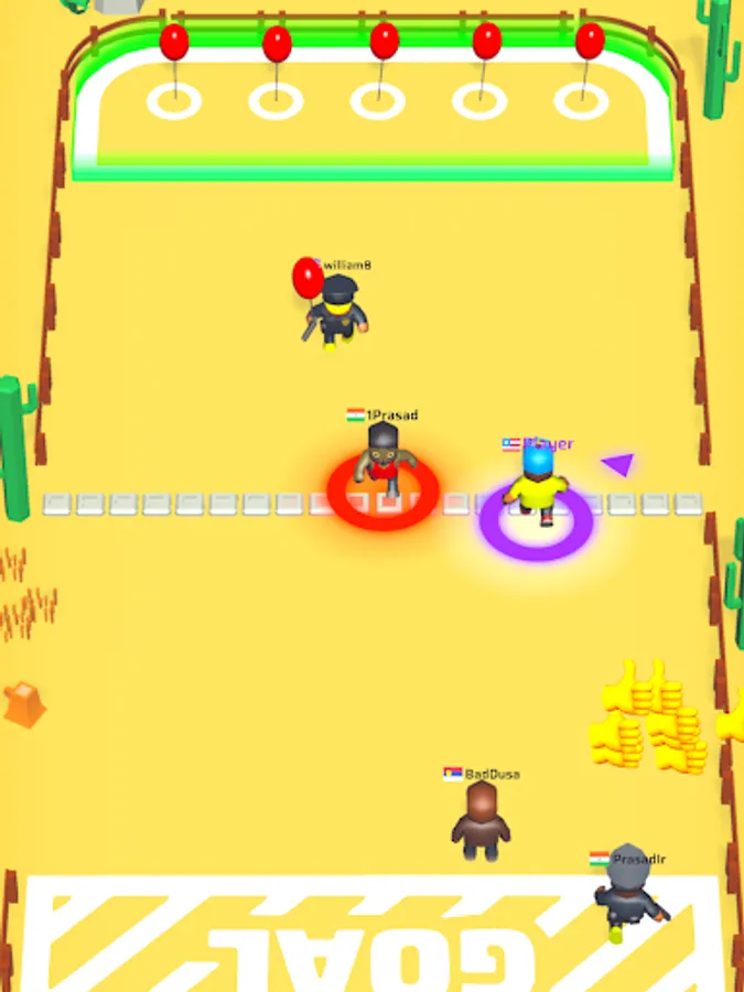 Run to grab the balloons and be the first to take them back to the goal... But Don't Get Caught by the zombie in the middle!!
