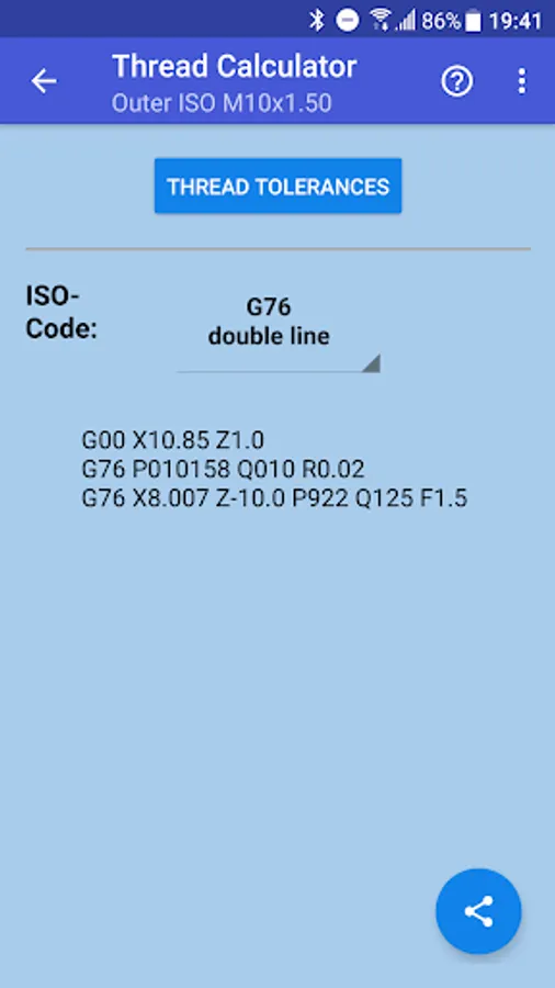 The app generates NC code with G76, G32, G33, G92 and CYCLE97