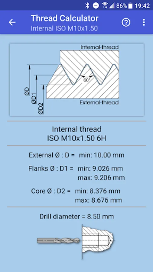 - ISO-Metric ( M1 - M68 ) DIN 13-1 / DIN 357