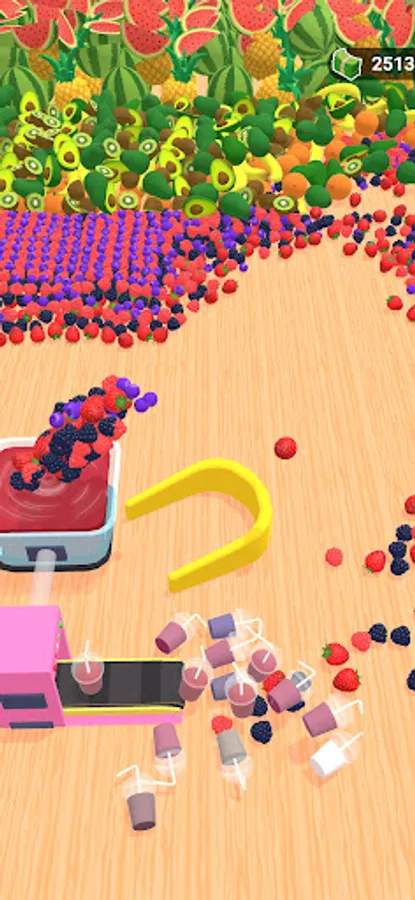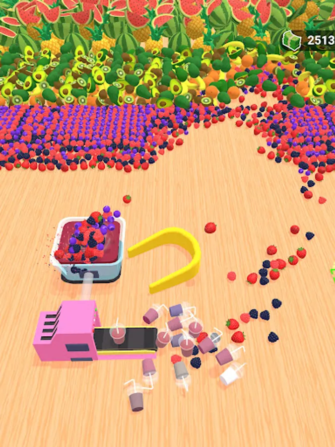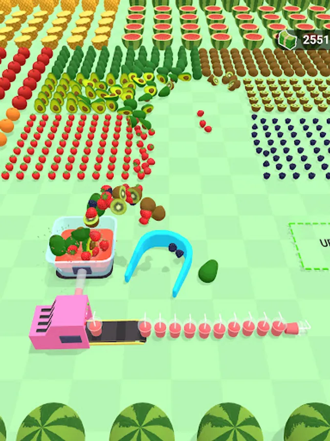 An idle scoop and crush game where you collect/scoop fruits of various size and types and juice them in grinder.