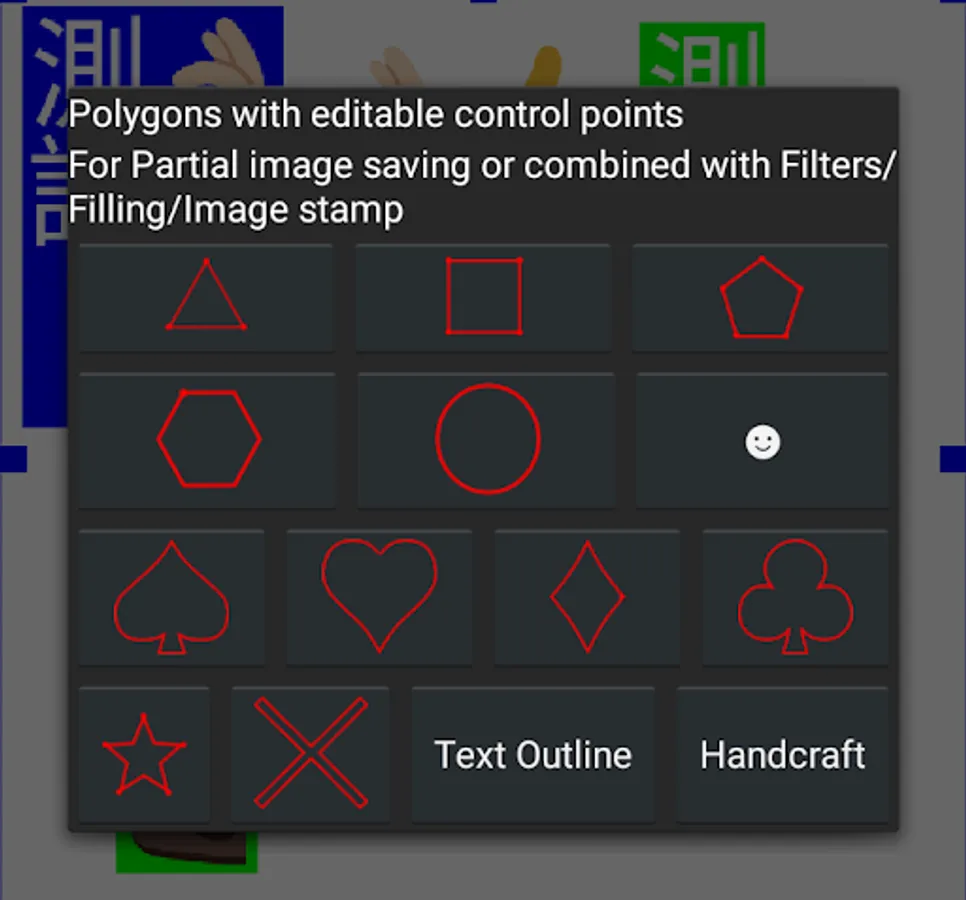 - The polygon selection of photo editor supports holes. The hole can be used in polygons(polygon selection + Rectangle), filters, image stamp copy and partial image saving.