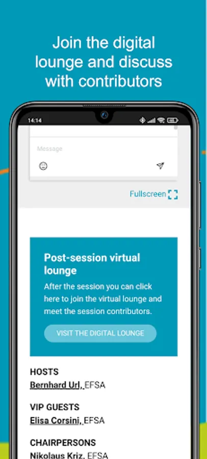 Furthermore, after each session conclusion there will be a virtual lounge where chatting directly with contributors will be possible!