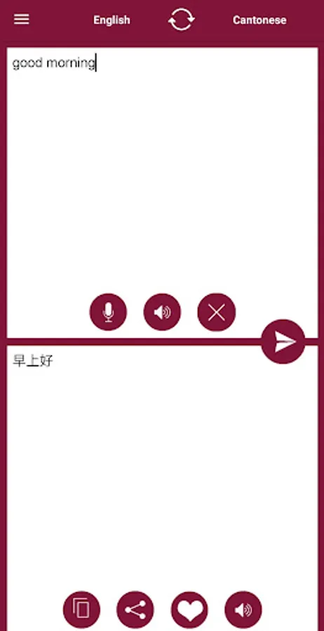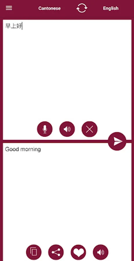 * App works in both mode, Cantonese to English Translator or English to Cantonese Translator.