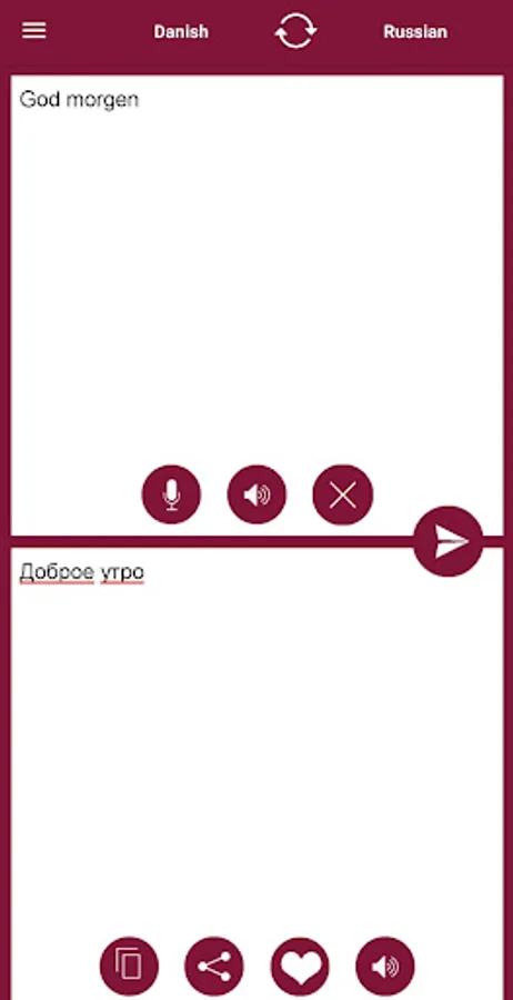 * App works in both mode, Danish to Russian Translator or Russian to Danish Translator.