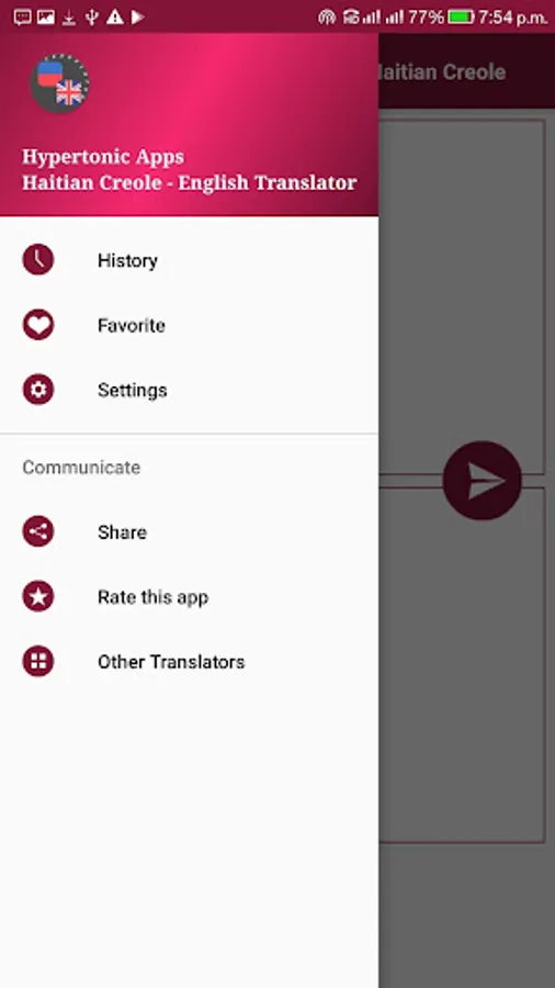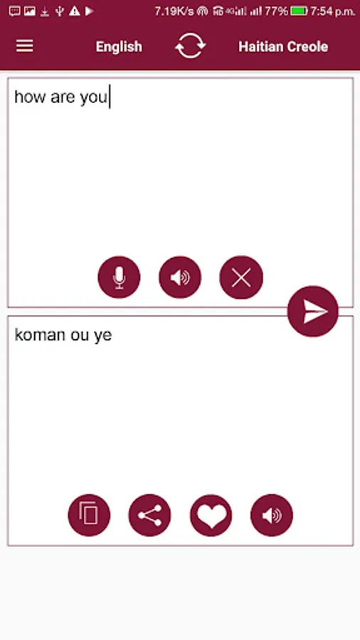 * App works in both mode, Haitian Creole to English Translator or English to Haitian Creole Translator.