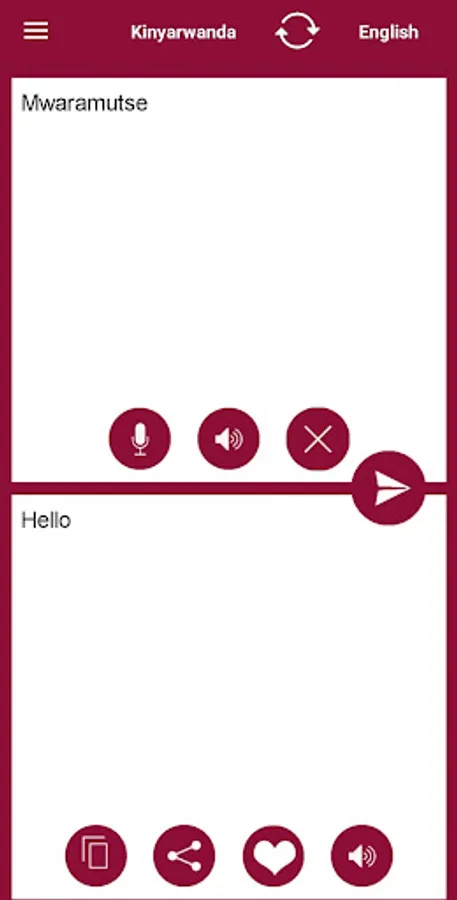 * App works in both mode, Kinyarwanda to English Translator or English to Kinyarwanda Translator.