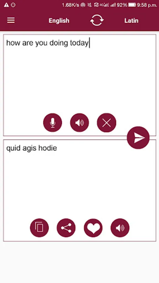 * App works in both mode, Latin to English Translator or English to Latin Translator.