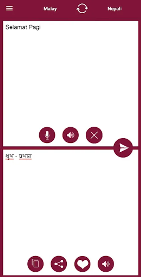 * App works in both mode, Nepali to Malay Translator or Malay to Nepali Translator.