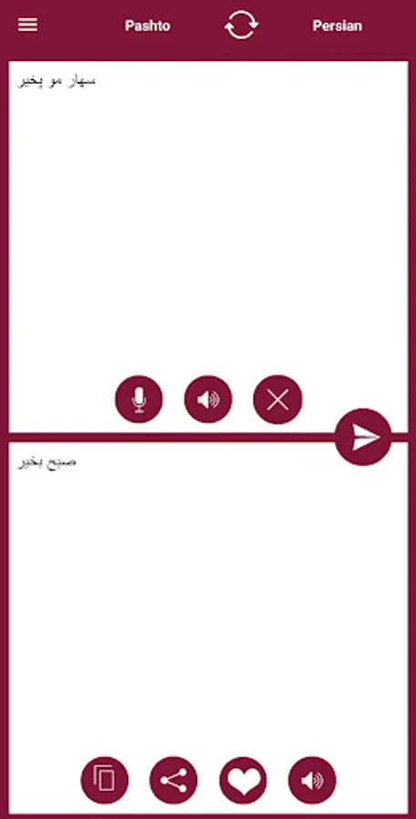* App works in both mode, Pashto to Persian Translator or Persian to Pashto Translator.
