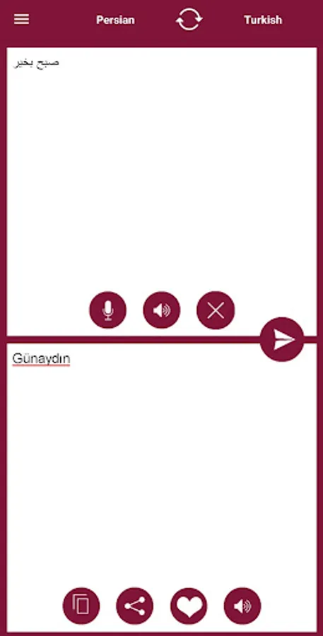 * App works in both mode, Turkish to Persian Translator or Persian to Turkish Translator.