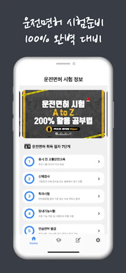 It provides not only driver's license tests, but also various driving knowledge for novice drivers.