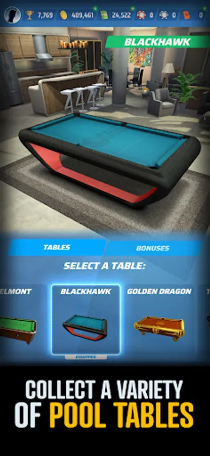 COLLECT GEAR AND UNLOCK POOL TABLES: