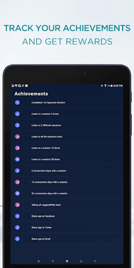 * Get rewarded for listening with badges of achievement as you consistently listen to your sessions.