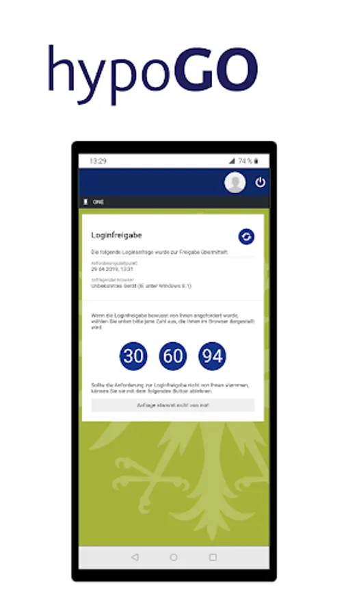 As you already know from the drawing of your orders, in future you will also need to approve your login in hypo @ home (Internet banking).