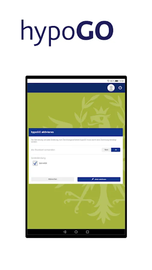Download the hypoGOApp from your Google Play Store. Activate the app with your internet banking login information. Draw the activation with a TAN.
