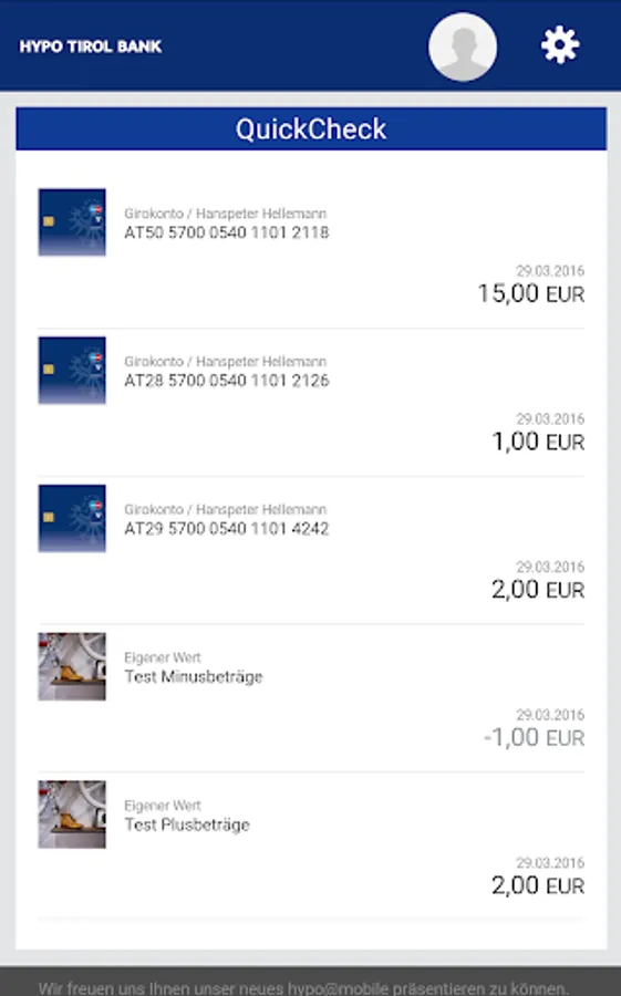 Whether account balance, sales transfer or news - you always have Hypo Tirol Bank with you. No matter where you are.