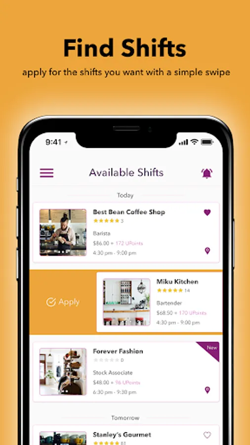 - Earn UPoints with every shift.