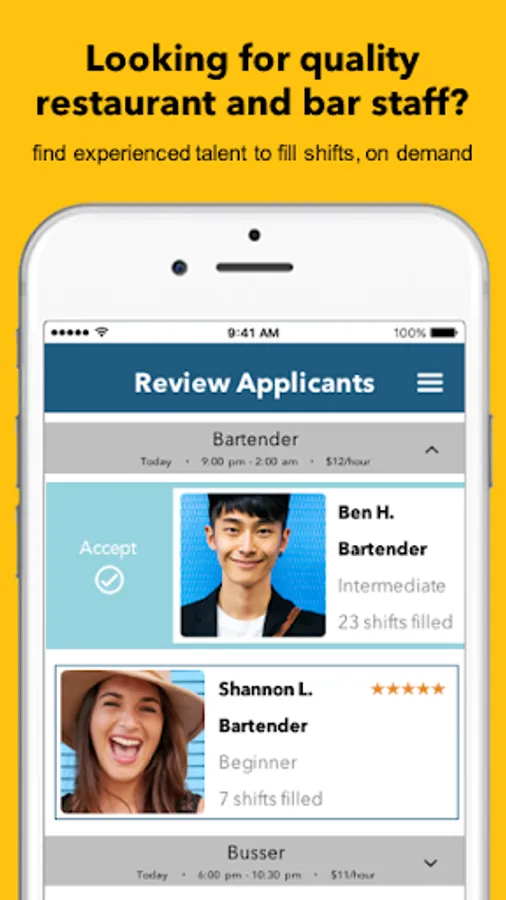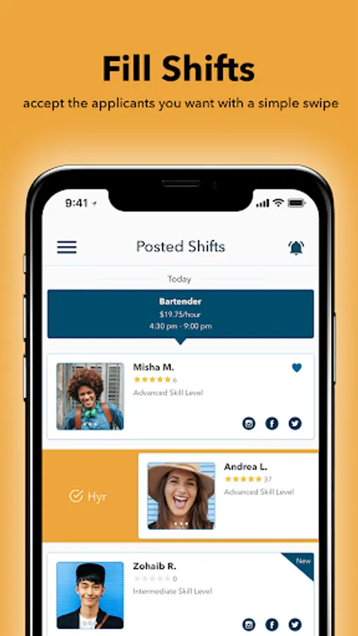 For Pros, Hyr’s fully mobile platform allows talented, driven workers an option to choose their hours and pick up shifts in a pinch. For business, Hyr connects them with accountable, rated workers, fast, at the best possible price.