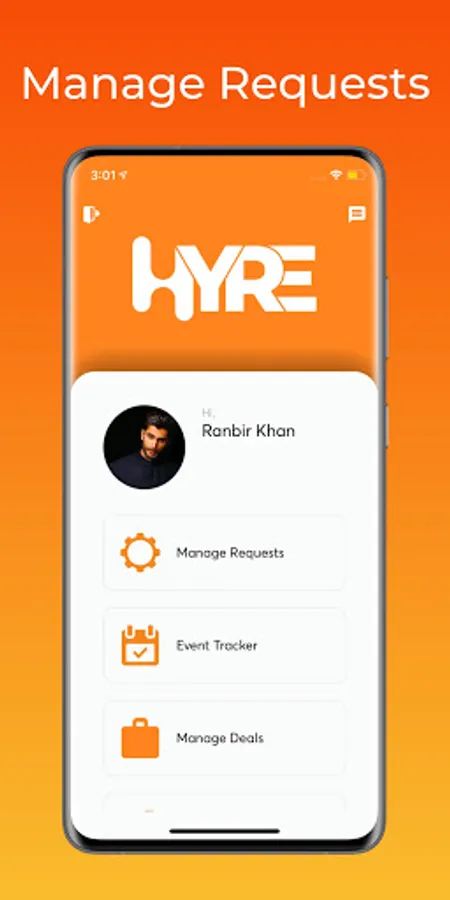 HYRE Manager - An app for celebrity managers to interact with verified users
