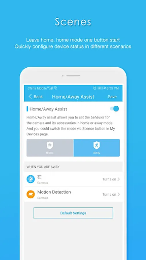[Profile] Built-in three modes: “away from home”, “at home” and “sleeping”. It is convenient and quick to configure the camera and sensor switch according to the scene.