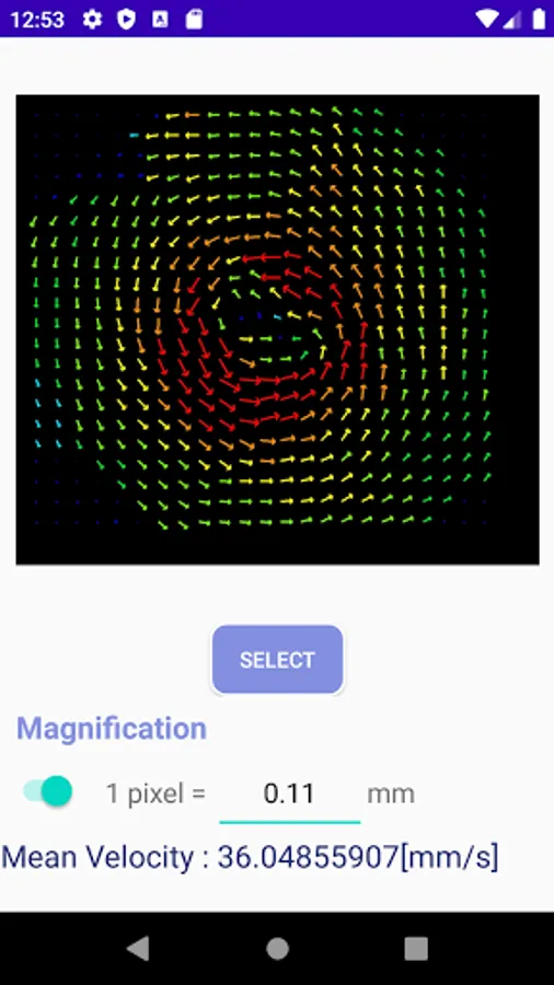 속도장의 평균속도를 [mm/s]단위로 확인할 수 있습니다.