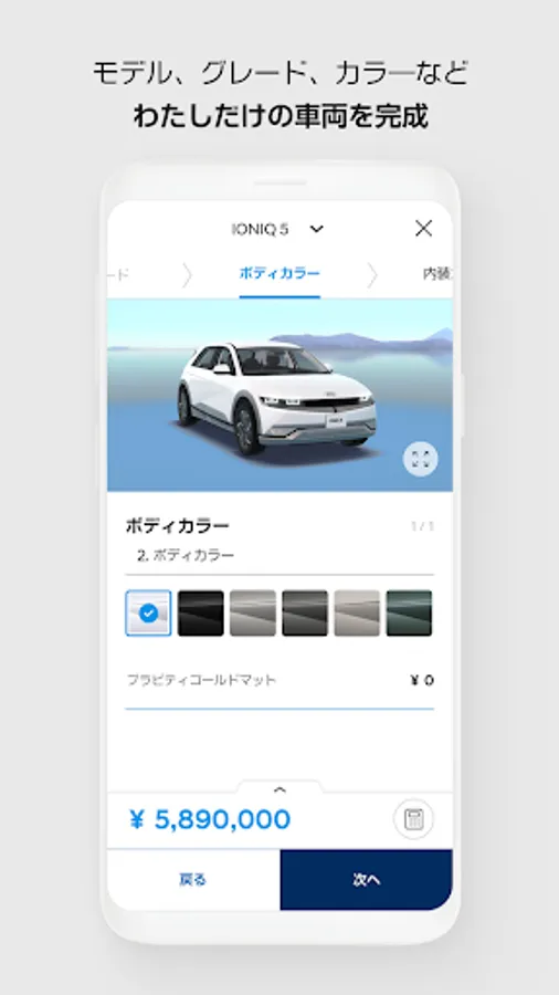 > Easy quotation: You can check the price information of the actual car as well as the interior and exterior of the actual car, such as grade, body color, interior color, etc. using 3D.