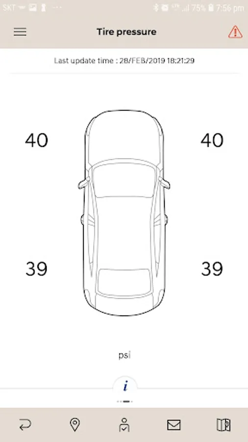 Provides the tire pressure status of the vehicle. If the tire pressure is not within standard pressure, the number of tire pressure will be displayed in red.