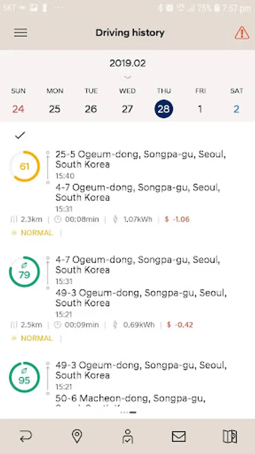 - When the vehicle is running, this app reads the location information of the smartphone and uses it to show the trip route of the vehicle.