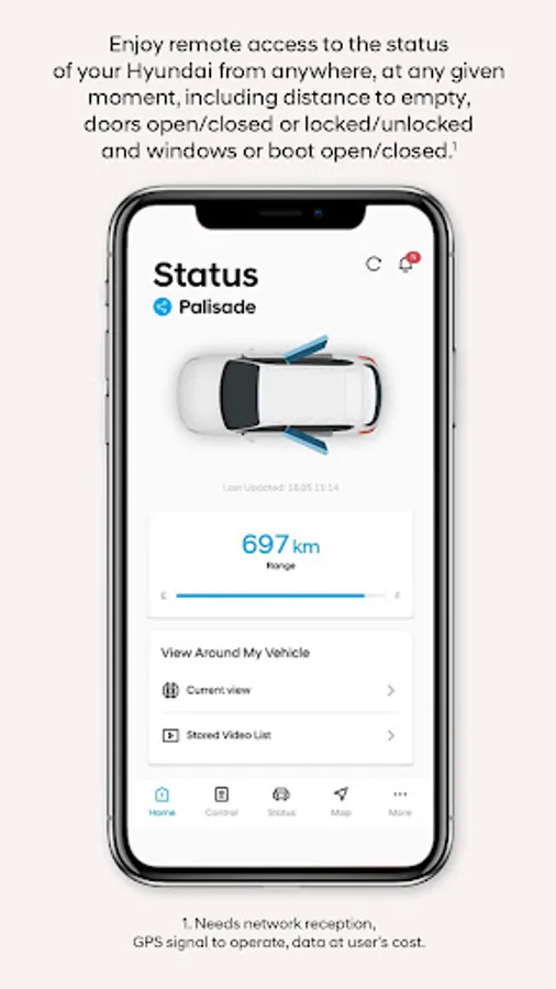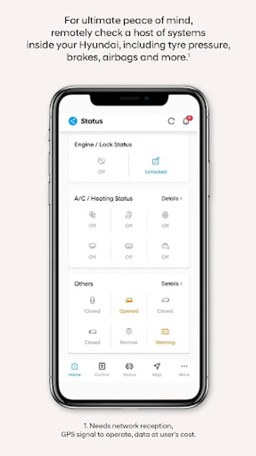 5. My Vehicle Status: offers an overview of key elements of your Hyundai such as door locks, ignition, air conditioning and battery level.