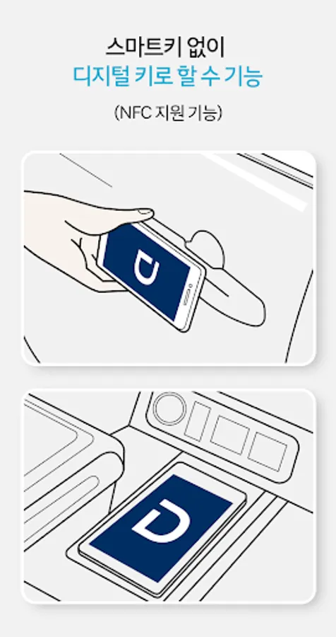 Unlock your smartphone's screen to touch the NFC antenna of your smartphone to the door handle of your vehicle. After digital key authentication via NFC antenna mounted on the door handle