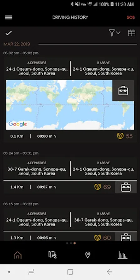 Users can check the locations of their vehicles on the map and find the directions to the vehicles. If they want, they can share the locations of the vehicles for 1 hour.