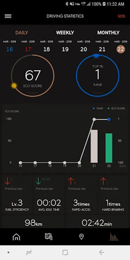 Provides statistics of a vehicle's daily, weekly, and monthly driving patterns.