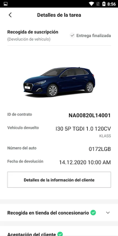 It allows you to see the subtasks to carry out the transfer of the vehicle (delivery, collection, return of the vehicle) and, later, mark them as completed.