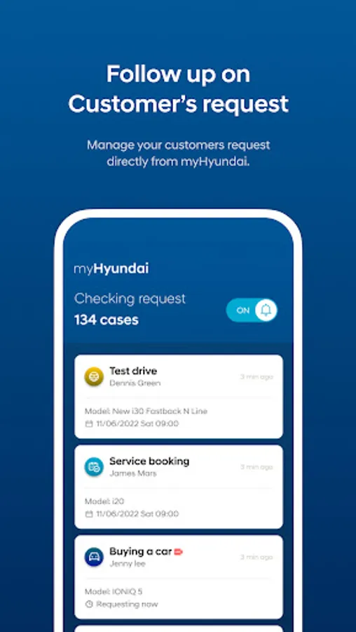 myHyundai Dealer App brings Hyundai customers and dealers into one place. Keep in touch with your customer regarding buying, selling or owning a Hyundai. Through myHyundai Dealer App, you will be to attend to customer requests whether you are at your desk or on the go.