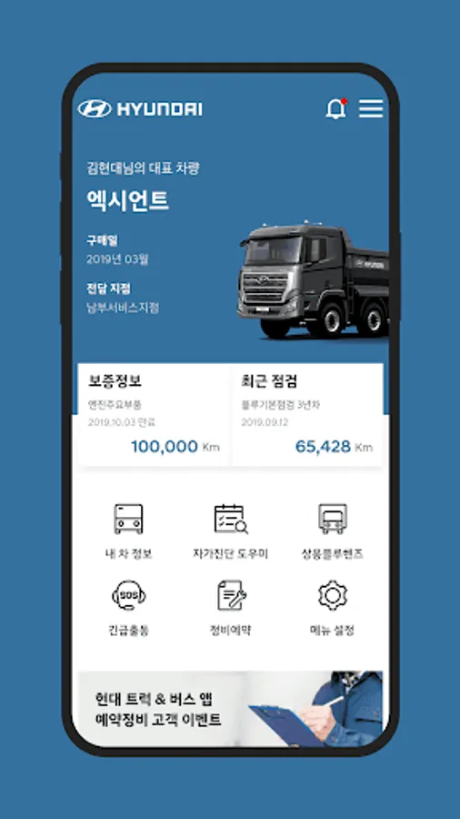 현대 트럭&버스 앱으로 상용차를 위한 다양한 서비스를 이용하실 수 있습니다.