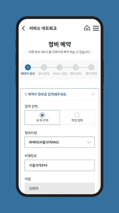 - 보증정보, 리콜정보, 자가진단 도우미, 정비이력 조회