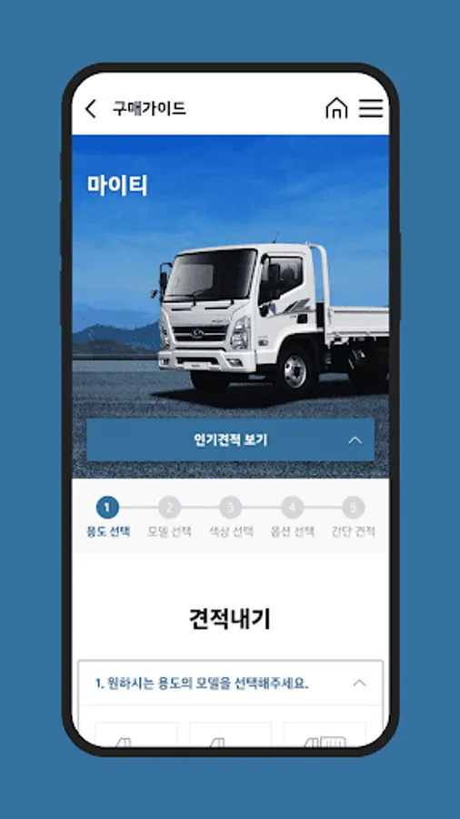 - 판매 네트워크, 견적내기, 구매상담 신청, 이달의 구매혜택 등