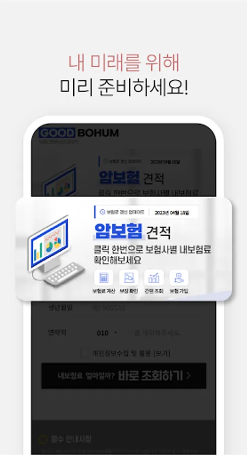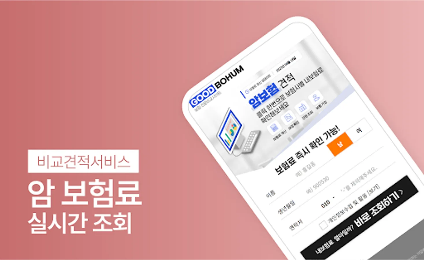 You can easily meet cancer insurance products by major insurance companies in Korea that are essential to you in the Cancer Insurance Ranking Direct Cancer Insurance Premium Price Comparison Calculator app. We will help you make a reliable cancer insurance choice in preparation for the enormous cost of cancer treatment!