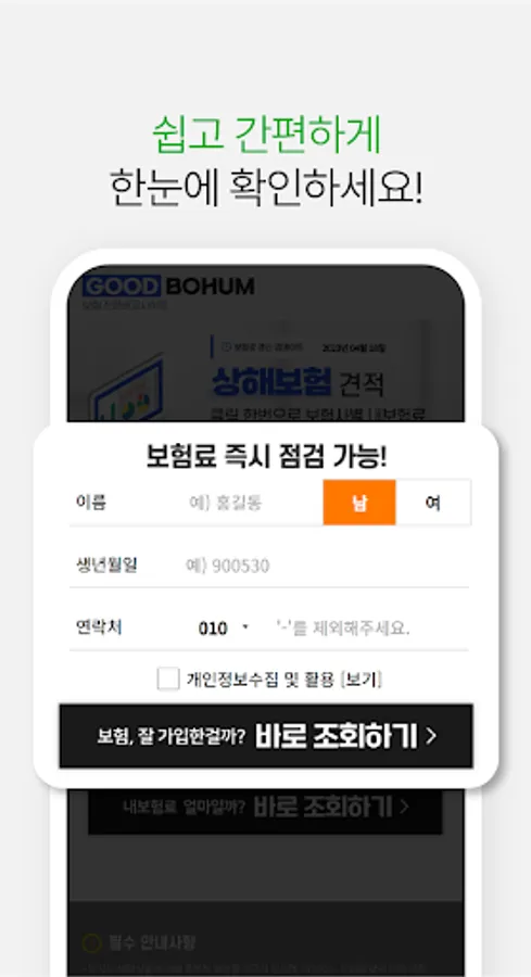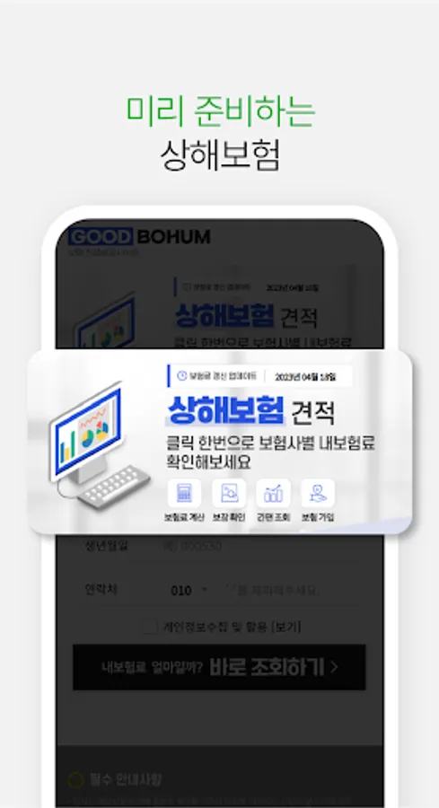 Mobile Accident Insurance APP omitted the complicated authentication process. If you simply enter information, you can receive a free insurance design service through consultation with a professional counselor. Meet accident insurance products on the Mobile Accident Insurance APP anytime, anywhere, regardless of time and place!