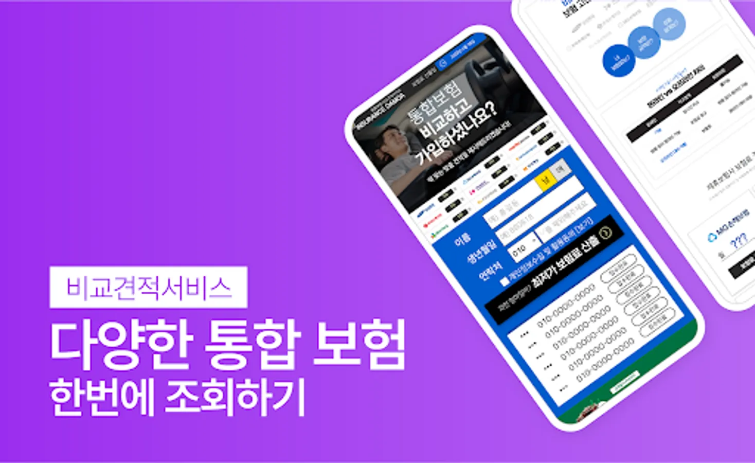 You can receive a free insurance design service with a professional counselor by simply entering information without complicated authentication procedures. 24 hours a day, 365 days a year, anytime, anywhere, regardless of time and place, meet the integrated insurance products in the insurance comparison site Insurance Damoa Comparison Quote App!