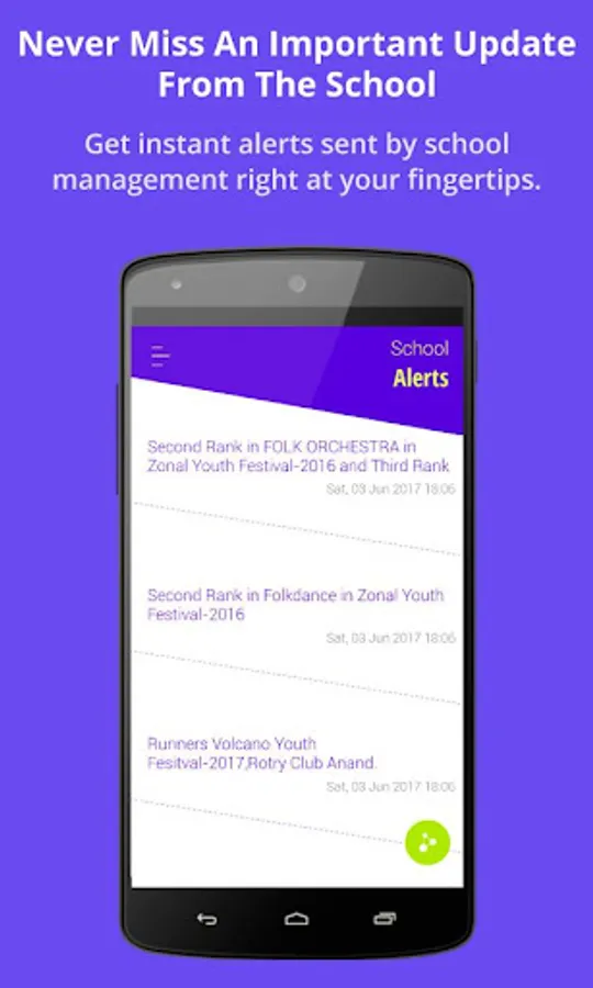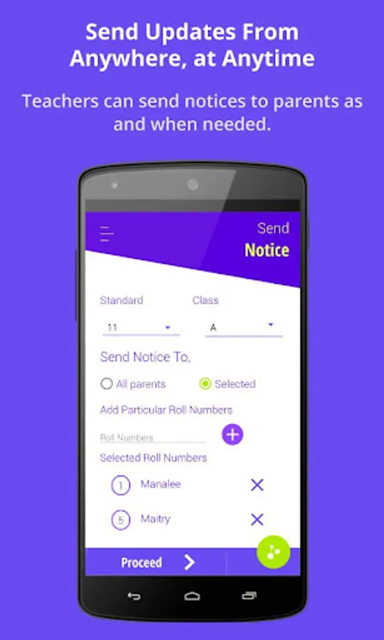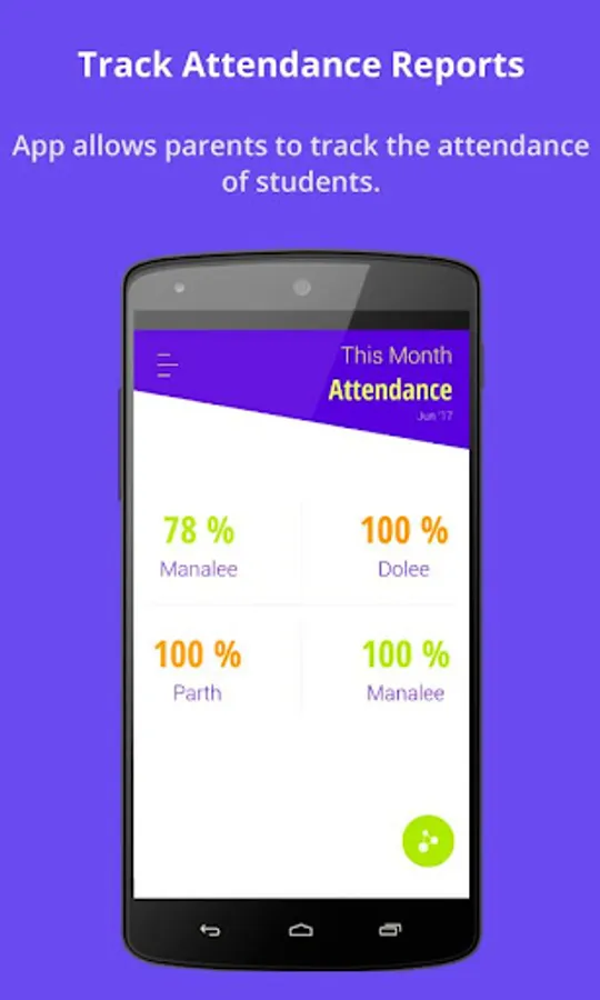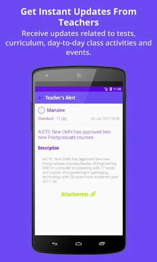 Get or send Instant notifications, News Forwarding, Attendance report, attendance tracking, child reports and a lot more.